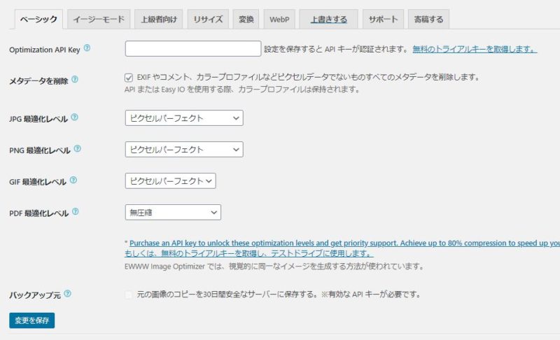 画像のファイルサイズを小さくするだけでなく、個人情報を保護する観点からもこれらメタデータは削除しておくほうがよいので、そのように設定します。